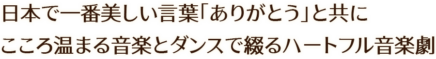 本作品は、この「ありがとう」の言葉とともに、これまでに数々の脚本・演出を手がけるモトイキシゲキ氏が、震災後に現地での取材を通じて実際にあった出来事をもとに、今回の上演のために新たに音楽劇として台本を書き下ろした作品です。